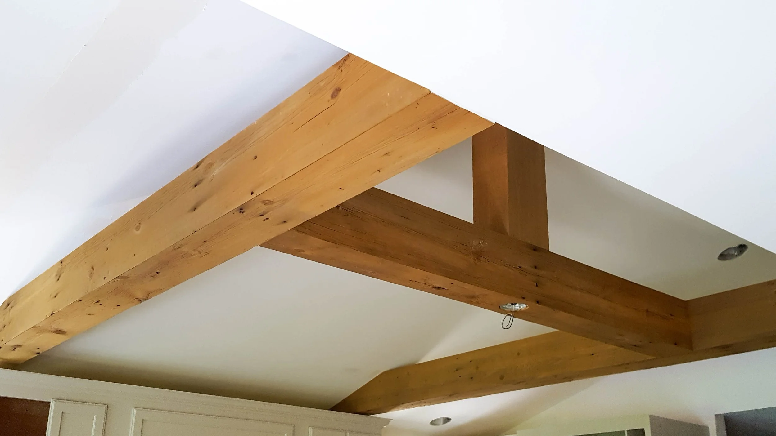 Kitchen remodel - structural framing wrapped in reclaimed pine