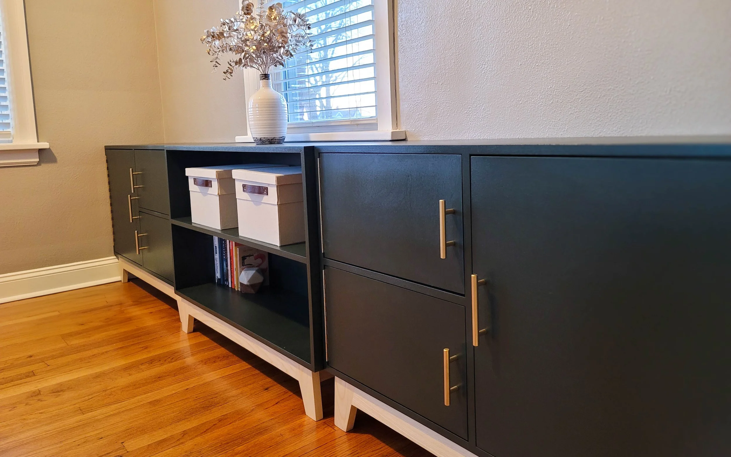Office cabinetry - painted birch boxes paired with natural ash bases.